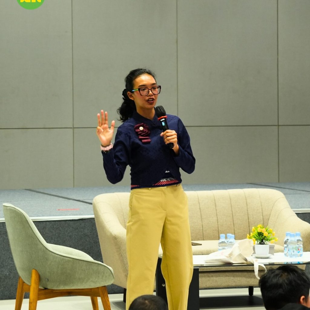 Alia tampil penuh percaya diri di hadapan para peserta, membagikan kisah perjalanan akademik dan pengalamannya di berbagai forum internasional. Empat tahun lalu, ia duduk di bangku yang sama sebagai siswi penuh mimpi. Kini, ia berdiri di depan panggung yang sama, bukan lagi sebagai murid, melainkan narasumber muda yang menginspirasi.